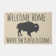 Esteira de porta temático ocidental bonito de América que caracteriza a casa boa vinda da frase da "onde o búfalo vagueia" em cinzento assim como uma silhueta cinzenta do búfalo com chifre branco.