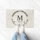Rustic Farmhouse Style Monogrammed Wood Doormat - Que maneira adorável de dar as boas vindas à sua família e amigos à sua casa no estilo da fazenda. Nossa porta rústica mostra seu Monograma rodeado por "bem-vindo à nossa casa" em bonito letras escritas, louros rústicos e um coração. O fundo da porta é madeira de pássaros rústicos. A porta faz parte de uma coleção. Nosso modelo fácil de usar torna fácil e conveniente personalizar sua porta. A porta faz parte de uma coleção. Projetada por Beverly Bainbridge Homespun Cottage Designs E: homespuncottagedesigns@gmail.com