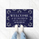 Na moda, Estrela de David WELCOME Door Mat com a redação WELCOME & BE BLESSED ALL WHITER ENTER AQUI (EXCETO TRESPASSERS). O fundo é uma estrela prateada falsa de David contra um fundo azul da meia-noite. Todo o texto é PERSONALIZÁVEL para que você possa alterar o texto de acordo com suas necessidades, por exemplo, adicionar nome da família, lema da família, citação inspiradora. presente de excelente para Hanukkah.