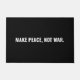 Faça a paz não seja um texto preto e branco minimalista simples e ousado protesto anti-guerra Door Mat / tapete. Texto branco totalmente personalizável sobre fundo preto. Conflito no Médio Oriente/Gaza.