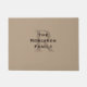 Este tapete de porta pode ser de qualquer cor de fundo que você selecionar. O fundo padrão do tapete é bege; O nome da família é marrom escuro, o monograma é fonte clássica marrom claro. "Crie o seu". Um ótimo presente para casamento, aniversário ou mudança. Todos os direitos reservados © 2024 Alan & Marcia Socolik.