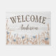 Este tapete ao estilo da fazenda é decorado com uma simples representação de um campo de verão de flores silvestres sobre um fundo de proteção. Personalize-o com seu nome desejado para um presente memorável.