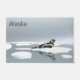 Uma pintura digital de uma Foca de Fita marrom e branca assentando em um gelo flutuando em uma cinza e um dia de sonho. O texto personalizável lendo "Alaska" também é exibido. O selo da frança (Histriophoca fasciata) é uma espécie média que se pinta da verdadeira família das focas (Phocidae). Estão entre os mais notáveis e facilmente reconhecíveis. Podem ser identificados pelas bandas distintivas de cor clara ou "fitas" que rodeiam o pescoço, cada frondosa e quadris. O contraste é particularmente forte com os machos, tendo uma pelagem castanha escura a preta com fitas brancas, as fêmeas variam de cinza de prata a castanho escuro com fitas paler. As crias recém-nascidas de foca de fita têm pelo branco natal. Depois de moldar o pelo natal, sua cor muda para a cinza azul nas costas e a prata embaixo; depois de alguns anos, algumas porções ficam mais escuras e outras mais brilhantes, e somente aos quatro anos de idade o típico design mostra. As focas de fita moldam a casaco de cabelo anualmente, começando em maio e terminando em julho, com os indivíduos mais jovens molhando mais cedo. O selo da fita possui um saco de ar inflável grande que está conectado à traqueia e se estende do lado direito sobre as costelas. Pode funcionar como um dispositivo de flutuação, para armazenamento de ar durante o mergulho ou para "fonação". É maior nos homens do que nas mulheres. O selo de fita pode crescer até cerca de 5,2 pés de comprimento e pesar até 209 lb em ambos os sexos. As focas de fita alternam as suas frondes e balançam os seus quartos traseiros para atravessar o gelo, a preferencialmente, do que utilizando o movimento semelhante à lagarta normalmente utilizado pela maioria das focas. Os selos de fita são também adaptados fisiológica e anatomicamente para fazer mergulhos mais profundos (até cerca de 1950 pés (600 m)) e natações mais rápidos que outros selos. Têm um saco de ar que as focas de fita são uma espécie sazonalmente ligada ao gelo encontrada nas regiões árcticas e subárticas do oceano Pacífico Norte, nomeadamente no Mar de Bering e no Mar de Okhotsk, e em partes adjacentes do oceano Ártico, incluindo o Mar de Chukchi, no Mar Siberiano Oriental e no Mar de Beaufort Ocidental. Estas focas são relativamente solitárias, passando a maior parte do seu tempo no oceano aberto e formando agregados soltos no gelo do grupo durante a primavera para dar à luz, crias de enfermeira, e moldados. Eles são muito raramente vistos em gelo ou terra de curta distância. Essa espécie parece preferir geleiras "limpas", moderadamente grossas, encontradas na zona interna da frente do gelo. Do final de março ao início de maio, as focas de fita no Mar de Bering variam entre as Ilhas Pribilof e o Golfo de Anadyr, aproximadamente ao longo do intervalo da plataforma continental, sendo mais abundantes na parte noroeste do gelo. À medida que o gelo recua de maio a médio de julho, as focas se movem mais para o norte, onde se arrastam na extremidade do gelo recuado e restam gelo, ocasionalmente em grupos densos. Após o derretimento do gelo, a maioria das focas de fita provavelmente migrará com o gelo marinho recuado através do Hetero de Bering para o Mar Chukchi ou permanecerá pelágica no Mar de Bering durante o resto do ano. Até à data, só foram reconhecidos dois casos em que se encontraram focas de fita a sul de Seattle, Washington e ainda mais ao sul na Baía de Morro, Califórnia. Não havia nada que sugerisse que a doença era a causa do aparecimento das focas em qualquer lugar, pois ambas pareciam saudáveis. As mães de foca de fita dão à luz os seus filhotes longe do mar no gelo durante os meses de abril a princípios de maio. As crias duplicam o seu peso durante o aleitamento e são desmamadas após três a quatro semanas. O acasalamento deve ocorrer logo após o desmame, embora pouco se saiba do sistema de criação. Sabe-se que as focas de fita comem uma variedade de peixes, cefalópodes e crustáceos; no entanto, a informação sobre os seus hábitos alimentares é limitada e restringida principalmente à primavera quando as focas de fita se alimentam normalmente menos, como evidenciado pela diminuição do peso e da espessura da borracha. Embora haja pouca evidência direta de predação, potenciais predadores de focas de fita incluem ursos polares, baleias assassinas, tubarões e morsas. Os selos de fita são relativamente instáveis enquanto são arrastados e podem ser aproximados de perto por barco. Este comportamento sugere que as focas de fita provavelmente não experimentam muita predação por ursos polares, mas podem também torná-las especialmente susceptíveis à caça pelo homem. Os nativos da Sibéria e do Alasca caçaram o selo de fita durante muitas gerações para fins de subsistência, e estima-se que a atual captura anual dos nativos do Alasca seja inferior a 200 focas por ano. As colheitas comerciais de focas de fita foram realizadas por seladores soviéticos nos anos 1960-1980, período em que se pensa que a população do Mar de Bering tenha diminuído de 80.000 ou 90.000 animais para 60.000. Levantamentos no início e médio dos anos 1970 fizeram a estimativa populacional mundial de focas de fita entre 200 mil e 240 mil, com estimativas entre 60 mil e 100 mil no Mar de Bering. Não está atualmente disponível uma estimativa mais recente e fiável da abundância. Os predadores do selo de fita incluem a orca, o tubarão da Gronelândia e os ursos polares. Na década de 1960, a população de focas de fita no Mar de Bering foi reduzida de cerca de 120 mil para 70 mil. O tamanho da população aumentou para cerca de 130 mil em 1987, depois que as cotas foram fixadas para limitar a colheita a cerca de um quarto do número de focas caçadas anteriormente. Na última avaliação das unidades populacionais (2007), o Serviço Nacional de Pesca Marinha estimou uma população global de 240.000 focas de fita, 90.000-100.000 das qua
