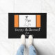 Uma esteira de Halloween que é fofa, divertida e um pouco assustadora! Fundo preto com laranja e branco. Um gráfico de fantasma e gato preto com a palavra "Boo". Em duas fontes (uma fonte divertida e uma cursiva) estão as palavras "Feliz Halloween de <Custom Family Name>!" Clássico, sofisticado e divertido!