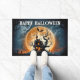 Este único tapete de boas-vindas do Halloween mostra uma ilustração de uma casa mal assombrada, sob uma lua de cheio. Sinta-se à vontade para ajustar todas as opções disponíveis, conforme desejar.