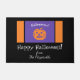 Esta porta de Halloween é fofa, divertida e um pouco assustadora! Fundo preto com púrpura, laranja e branco com uma abóbora laranja e a palavra Halloweeen numa fonte divertida. Em duas fontes (uma fonte divertida e um script) estão as palavras "Feliz Halloween de ()!" Clássico, clássico e divertido!