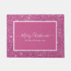 Porta de Natal Merry Elegante com um roteiro branco sobre um fundo cor-de-rosa cercado por um quadro brilhante rosa. Personalize com seu nome de família ou texto.