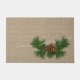 Belo bege clássico, esticado e colorido, tecido de palha de juta, padrão de tecelagem com tecido com imagem sazonal de cones de pínus e agulhas, e um clássico desejo de saudação de Felizes divertida. A design da temporada de dezembro foi criada para o designer de interiores, ou para o amante do estilo country da cabana que desfruta dos temas de inverno e Natal. Os produtos originais e modernos para aqueles que adoram decorar a varanda, o pátio ou os assentos de quintal são da sua casa, cabana de madeira, casota, lago ou férias de rio.