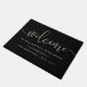 Um presente de excelente para recém-casados ou novos proprietários, nossa porta de boas-vindas personalizamos em traços negros duradouros e quentes "bem-vindos a nossa felicidade para sempre" em uma mistura de modernos roteiro de caligrafia manuscrito e letras clássicas de blocos. Personalize com seus nomes e ano estabelecido.