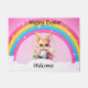 Este tapete de boas-vindas ao Felz pascoa vai olhar excelente na sua porta com um coelho com um ovo colorido e flores sentados nas nuvens