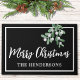 Bem-vindos à família e amigos com esta casa de Natal Feliz. É decorado com água embebida em fundo preto. Facilmente personalizável. Use a Ferramenta Design para alterar o tamanho, o estilo ou a cor do texto. À medida que criamos a nossa trabalho de arte, não encontraremos estas imagens exatas de outros designers. Original Watercolor © Michele Davies.