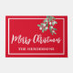 Bem-vindos à família e amigos com esta casa de Natal Feliz. É decorado com água embebida em fundo vermelho. Facilmente personalizável. Use a Ferramenta Design para alterar o tamanho, o estilo ou a cor do texto. À medida que criamos a nossa trabalho de arte, não encontraremos estas imagens exatas de outros designers. Original Watercolor © Michele Davies.