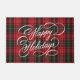 Este design de portaria festivo apresenta um padrão tartano em larga escala em vermelho, preto e verde com uma saudação de roteiro de caligrafia que diz "Feriados Felizes". Ele traz um toque clássico e elegante para sua casa para as férias.
