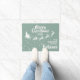 Mostre o quanto você acredita na magia do Natal e Papai Noel com esta porta de Natal mostrando a silhueta de Papais noeis de trenó em branco com suas renas, voando em uma trilha de estrelas. A legenda no topo lê Feliz Natal em letras brancas manuscritas. O texto é facilmente personalizável com seus desejos, ano e nome da família ou nome comercial. Esta porta faz a decoração perfeita de Natal para a sua casa