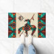 Esta é uma extremidade única de "um tipo" da porta da trilha! Apresenta um Fim Americano Nativo Sudoeste da Trilha Índia e Cavalo Sob o Sol em um Fundo Sandstone... Cercado por uma Fronteira em Turquesa, Laranja & Negro! Design De Arte Original Pelo Artista Kerry Miller.