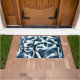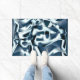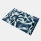Estampados com desenhos de fita curvos e sobrepostos entre si, e com algum tipo de pequenos entalhes ou arranhões alinhados, em alguma cor de azul-oceano e partes que se lembram de cleares cromados.