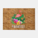 Um flamingo cor-de-rosa, flores tropicais e folhas com a palavra PARADISE ou qualquer outra redação que você escolher num padrão de impressão de wicker tecido faz uma porta de verão com tema na moda. (Não é mais veloz, é uma ilustração impressa na cor do cheio.) CORRESPONDENDO a itens na nossa loja.