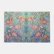 pintura lúdica de flamingos cor-de-rosa com folhas azuis e amarelas sobre fundo roxo é uma maneira divertida de se receber em casa com um sorriso.