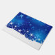 Ilustração azul nevado do Feliz Natal que caracteriza um gráfico na moda da queda de neve com os flocos de neve brancos e azuis.