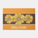 Saudações aos seus hóspedes com uma porta de boas-vindas que tem flores margaridas de 70 anos em tons antigos de laranja, marrom e ouro.