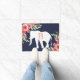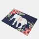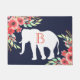 Flores de aquarela com uma silhueta de elefante branco e seu monograma personalizado da família.