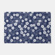 Ilustração vetorial de flores e espirais de sakura branca estilizada sobre fundo azul. Inspirado pelos padrões tecidos quimono tradicionais do Japão.