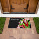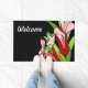 Mala de boas-vindas com design de flor rosa e beija-flor estilizada em fundo preto