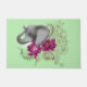 Perfil lateral de um elefante com tronco para cima. Flores fuchsia lotus e hena num pano de fundo verde