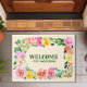 Flores Florais Aquarela Jardim Botânico Tapete de Boas-vindas . Lindas flores florais em aquarela adornam este tapete personalizado. Personalize com o nome da sua família e saudação.