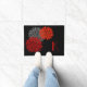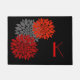 Um espantoso tapete de porta preta, com cinzas grandes, flores vermelhas e laranja estilizadas. Um monograma vermelho de letras grandes solteiros, no lado direito, está pronto para personalizar para você mesmo ou como uma ideia de presente de excelente. Que maneira adorável de receber convidados para sua casa.
