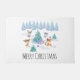Um padrão de Natal feliz com uma cena de Natal esquimática. Felizes animais florestais dançando em volta de uma árvore de Natal decorada. Design de aquarela festiva.