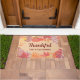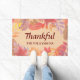 Este tapete de porta rústico é decorado com um padrão de folhas de aquarela nas maravilhosas cores do outono e a palavra "Graças" na tipografia da na moda. Facilmente personalizável. Original Watercolor © Michele Davies.