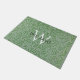 Um monograma - inicial branca grande sobreposta e nome personalizado em letras maiúsculas pretas menores - em um padrão de folhas de salgueiro verdes sobre um fundo de céu azul por William Morris (1834-1896) que agora é de domínio público.
