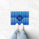 Porta no século Médio O moderno dinamarquês inspirou um padrão têxtil estilizado de folhas - tons de azul, de azul claro a cobalto profundo, acentuado com branco, sobre um fundo azul escuro / azul de índigo, com monograma
