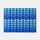 Doormat em um teste padrão inspirado dinamarquês moderno de matéria têxtil do meio século das folhas estilizados - máscaras do azul, dos azul-céu claros ao cobalto profundo, acentuado com branco, em um fundo escuro do azul do marinho/índigo