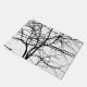 Uma foto de folhas, galhos e linhas de energia no outono. Imagem em preto e branco.