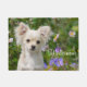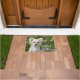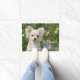 Um branco de creme de cabelos compridos novo coloriu o cão que senta-se em um jardim de florescência, foto da chihuahua tomada por Katho Menden. Este doormat - boa vinda - é uma ideia do presente para amantes do cão. http://www.zazzle.com/kathom_photo - - personalize-o com seu nome ou texto. -