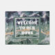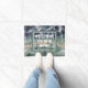 Este tapete de boas-vindas para a sua porta frontal mostra uma foto que captura as lindas cores num pedaço de fluorite polido. Esta gemstone exibe cores roxas, verdes e amarelas em um padrão listrado que mostra os únicos cristais cúbicos desta gema. "Welcome To Our Home" (Bem-vindo à nossa casa) aparece dentro um quadro retangular no centro deste tapete de porta.