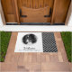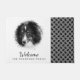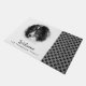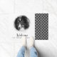 Modelo personalizado de foto de animal em cores preto e branco. Substitua a imagem de exemplo por uma fotografia do seu próprio animal de estimação e personalize as áreas de texto com o seu texto personalizado. Uma parte do design apresenta um padrão de impressões de pata preta de cão numa cor de fundo da cinza. A foto personalizada é mostrada através de uma forma redonda que dá uma borda suave irregular a qualquer imagem.