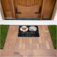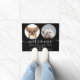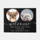 Tapete de boas-vindas personalizado e divertido com fotos e nomes de seus animais de estimação e nome da família em texto branco clássico sobre fundo preto com a mensagem "bem-vindo" em texto branco elegante. Personalize com seus detalhes e escolha a cor de sua preferência. Desenhado por Thisisnotme