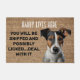 Um cachorro personalizado, Fox Terrier, com uma citação engraçada. "Você será cheirado e possivelmente lambido...Lidar com isso." Ele tem uma borracha não escorregadia que não trava nem enfiava, resiste a desaparecer, molde e mofo e pode ser facilmente limpo com uma mangueira. Seja criativo - clique em PERSONALIZAR para adicionar/remover/alterar texto, alterar a imagem, redimensionar a imagem, alterar cores, fundo ou qualquer outra coisa que a ferramenta de personalização permita!