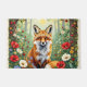 Step into a serene woodland scene with this charming fox illustration! A curious red fox with fluffy fur and bright amber eyes sits gracefully amid a lush meadow of vibrant wildflowers—red poppies, white daisies, yellow blooms, blue forget-me-nots—and ripe red berries on vines. Framed by tall trees and soft sunlight filtering through green foliage, the whimsical, storybook style evokes a peaceful, nature-filled mood perfect for animal lovers.