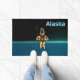 Uma imagem fractal em tons castanhos sugerindo um caçador Inuit altamente estilizado, vestindo roupas tradicionais de pele, segurando um arpão com cabeça de marfim. A imagem é sobreposta a um fundo que representa o inverno polar escuro. "Alaska" aparece em azul e branco brilhantes.