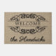 Portão da varanda frontal divertida com aparência têxtil no estilo burlap taupe contemporâneo com um antigo motif de banner floral. Com espaço para personalizar ou personalizar com o nome da família e a data estabelecida do ano de sua escolha.
