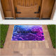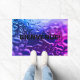 Foto de abstrato de cor de poças de água num tapete de boas-vindas com a palavra francesa de boas-vindas, Bienvenue