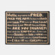 Esta design de porta minimalista foi projetada especialmente para você se você aprecia uma entrada moderna, na moda, com personalidade, sabedoria e humor. Combina a tipografia lúdica, atraente e amorosa em cores personalizáveis com o endereço direto e viscoso para os convidados de Fred Mat. O texto de "Fred the Mat" é dirigido diretamente aos seus visitantes e ao espectador da porta. Os textos e as expressões de Fred Mat são atrevidos, humorísticos, cheio de insinuações e, ao mesmo tempo, têm uma mensagem importante: "Tire seus calçados" ou "pelo menos limpe-os". A atenção dos seus convidados e os sorrisos estão garantidos. Divirta-se com Fred Mat. Para uma declaração encantadora à sua porta.