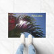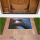 Um Doormat com uma fotografia das frondas ou das folhas de palmeira da palma, com o sol que brilha através das folhas. Você pode suprimir ou mudar da palavra "boa vinda".