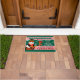 O bom e o bom humor serão evidentes à sua porta. Este tapete diz claramente "os residentes aqui promovem paz, amor e alegria - Bem-vindos à nossa humilde moradia, onde os abraços e o amor estão em abundância.