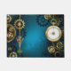Turquesa, texturizada, fundo steampunk com latão e engrenagens douradas, chave prateada e relógio. Estilo Steampunk.