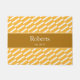 Adicione um toque de design único funky à decoração da porta de sua casa com este nome de família personalizado, porta. Este tapete moderno tem um padrão de fundo de listras amarelas e brancas e uma área de ouro para o seu sobrenome familiar e a data em que a sua família foi estabelecida (ou texto da sua escolha). Esta porta faz um presente personalizado de excelente para um lar, chá de panela, aniversário ou casamento, e é excelente para todos os casais e famílias.